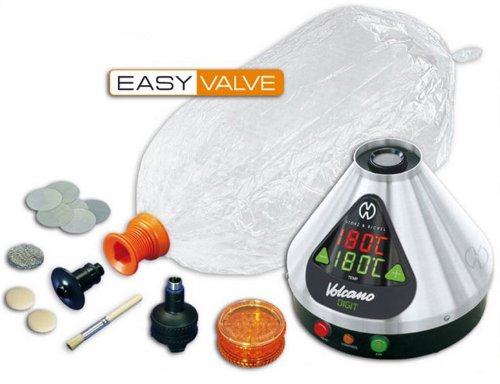Product Features: Shapely brushed metal cone Made of food safe tasteless aluminum heating block High performance heating cartridge Strong diaphragm pump Independent temperature fuse, air filter and silencer Aluminum heating block Vaporization temperature can be set between 104° and 446°F (40° and 230°C) - temperature accuracy +/- 1.5°C Electromechanical design Two years warranty Precision advanced electronic air temperature control system Large digital LED display with set and actual temperature readings and display readings in Celsius and Fahrenheit Automatic shut-off (if left unattended for 20 minutes, the unit automatically turns off) The Volcano Digit Vaporizer with Easy Valve Set includes: 1 pc. Volcano Vaporizer Digit 2 pc. Volcano Vaporizer Air Filter Set 1 pc. Custom Grinder 1pc. Volcano Vaporizer Operating Manual 1 pc. Volcano Vaporizer Valve 1 pc. Volcano Vaporizer Mouthpiece 1 pc. Volcano Vaporizer Filling Chamber 1 pc. Volcano Filling Chamber Insert 6 pc. Volcano Vaporizer Screen Set 1 pc. Volcano Vaporizer Balloon Hose Set 1 pc. Volcano Vaporizer Liquid Pad 1 pc. Volcano Vaporizer Balloon Clip 2 pc. Volcano Vaporizer Balloon Ring Set 1 pc. Volcano Vaporizer Brush Tool BONUS: Volcano Custom Travel Case - .00 Value for FREE To best protect your investment in this top-of-the-line vaporizer Volcano created this custom case constructed from high quality aluminum. Travel anywhere with confidence that your Volcano vaporizer will be protected. The case is lined with a high impact slim rubber seal and comes with 2 removable dividers to carry related components.